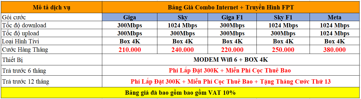 Chắc chắn có, nhưng tùy thời điểm mà chương trình nâng cấp Internet FPT lên Combo cả internet và truyền hình FPT khác nhau. Vui lòng liên hệ Hotline nâng cấp dịch vụ Internet FPT