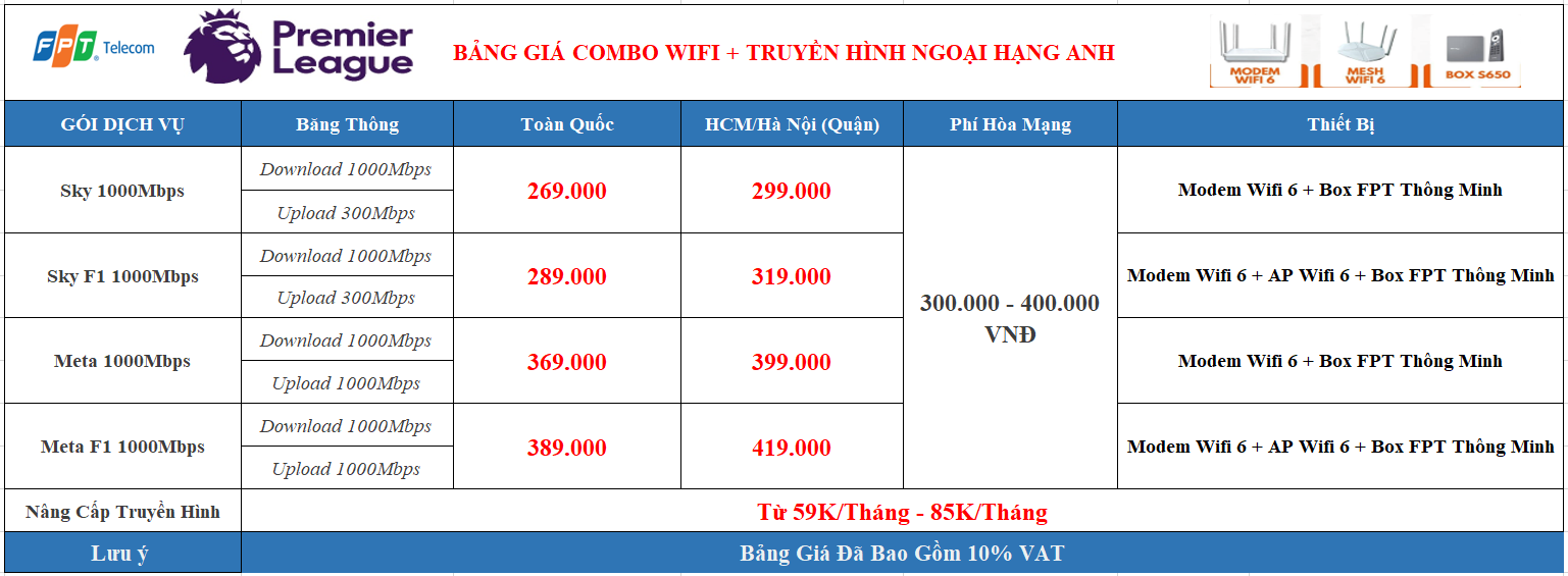 • Gói Combo 1000Mbps + Ngoại Hạng Anh: 269K/Tháng – Xem trên 2 thiết bị